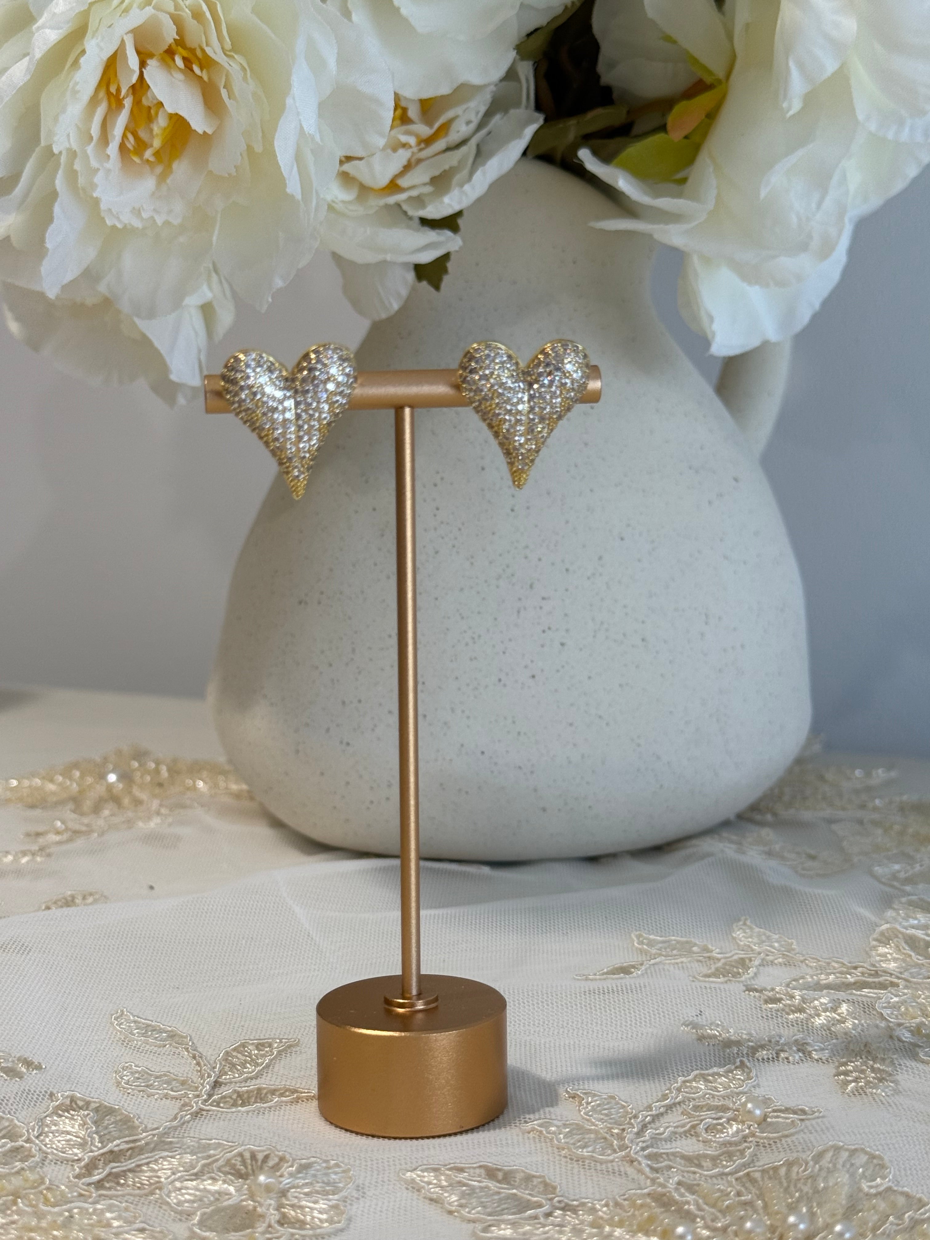 simple style round heart shape plating inlay copper zircon 18k gold plated ear studs.