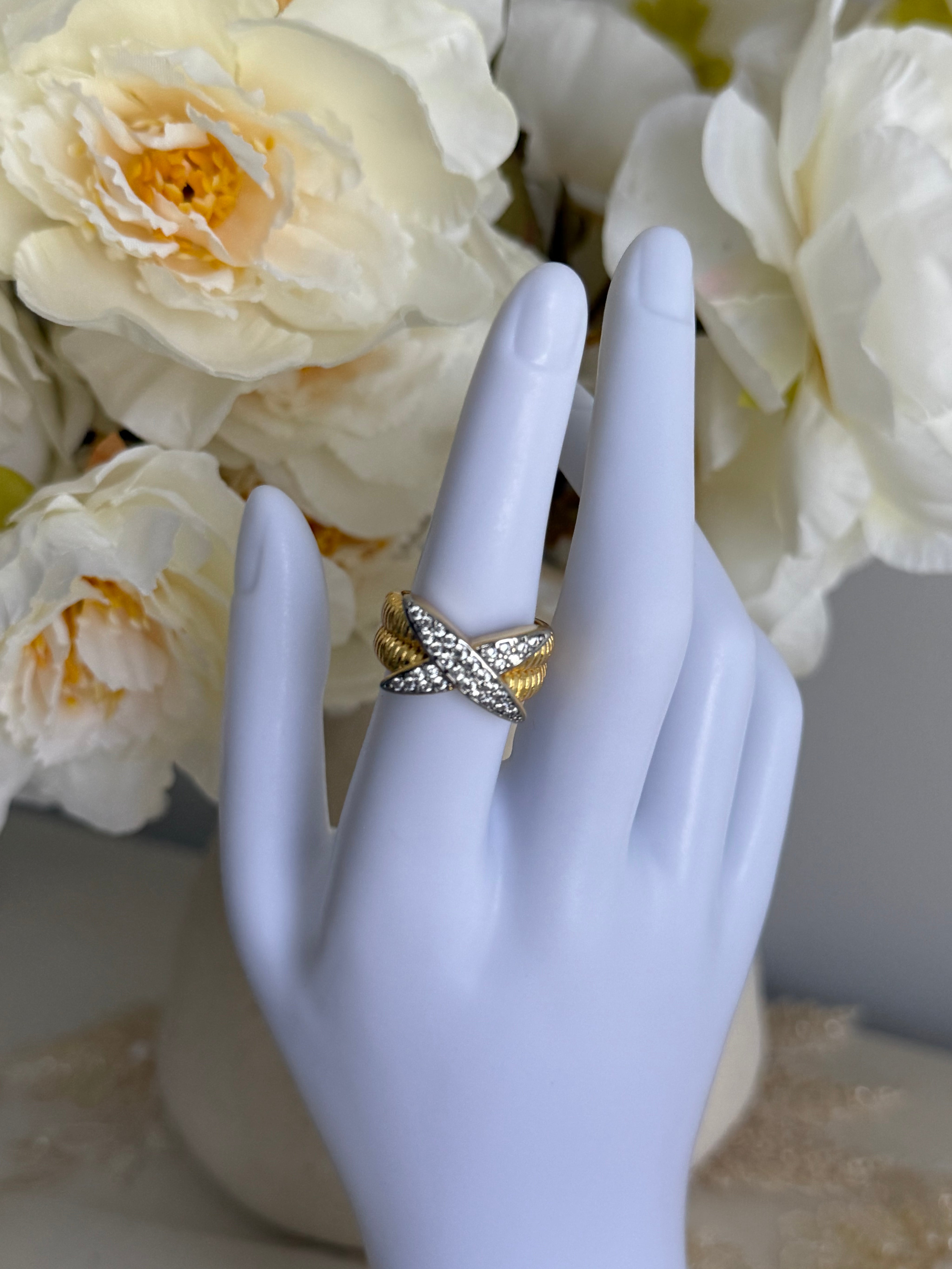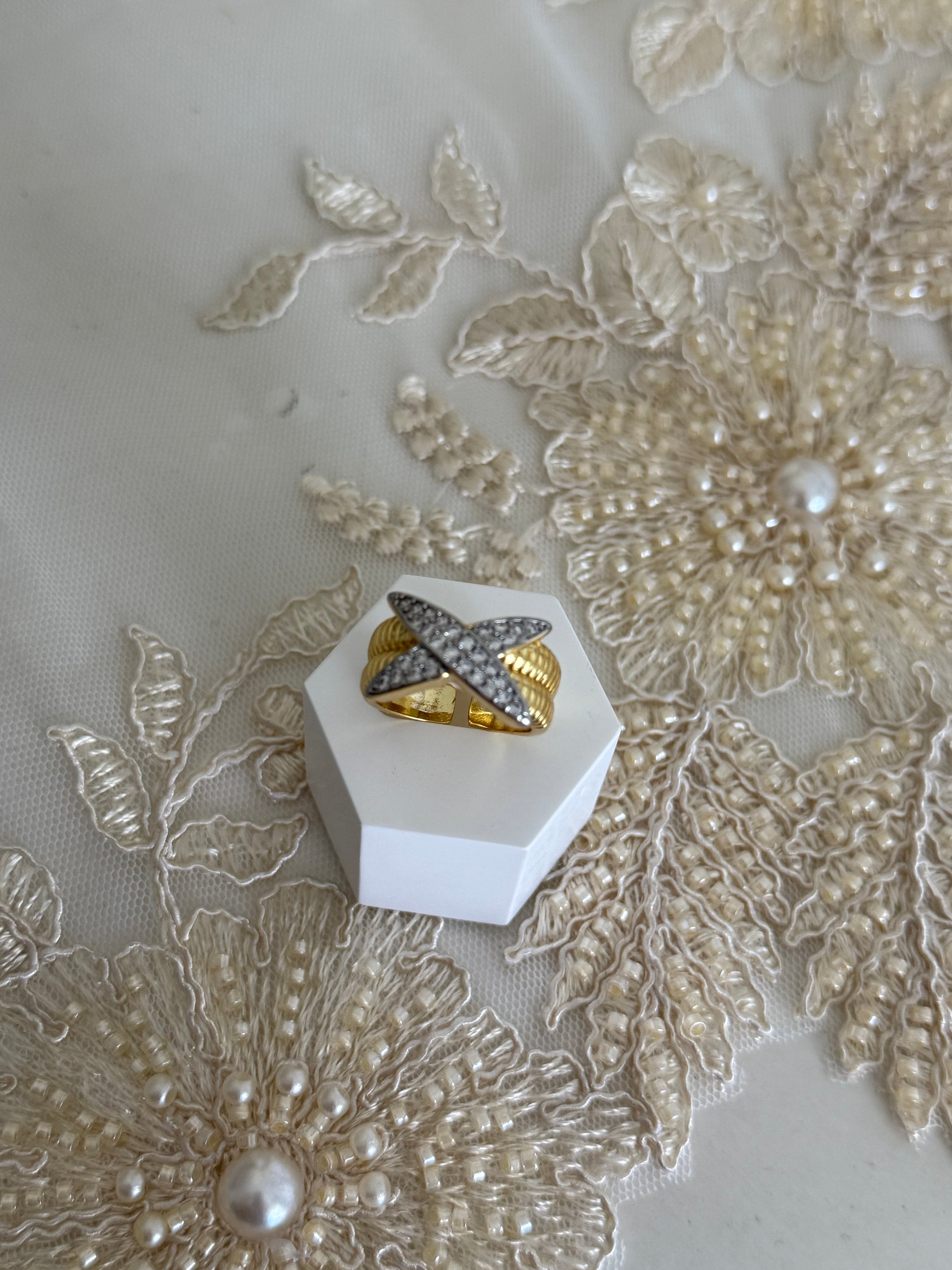 Elegant Style Copper 18K Gold Plated Inlay Lines Zircon Open Ring.