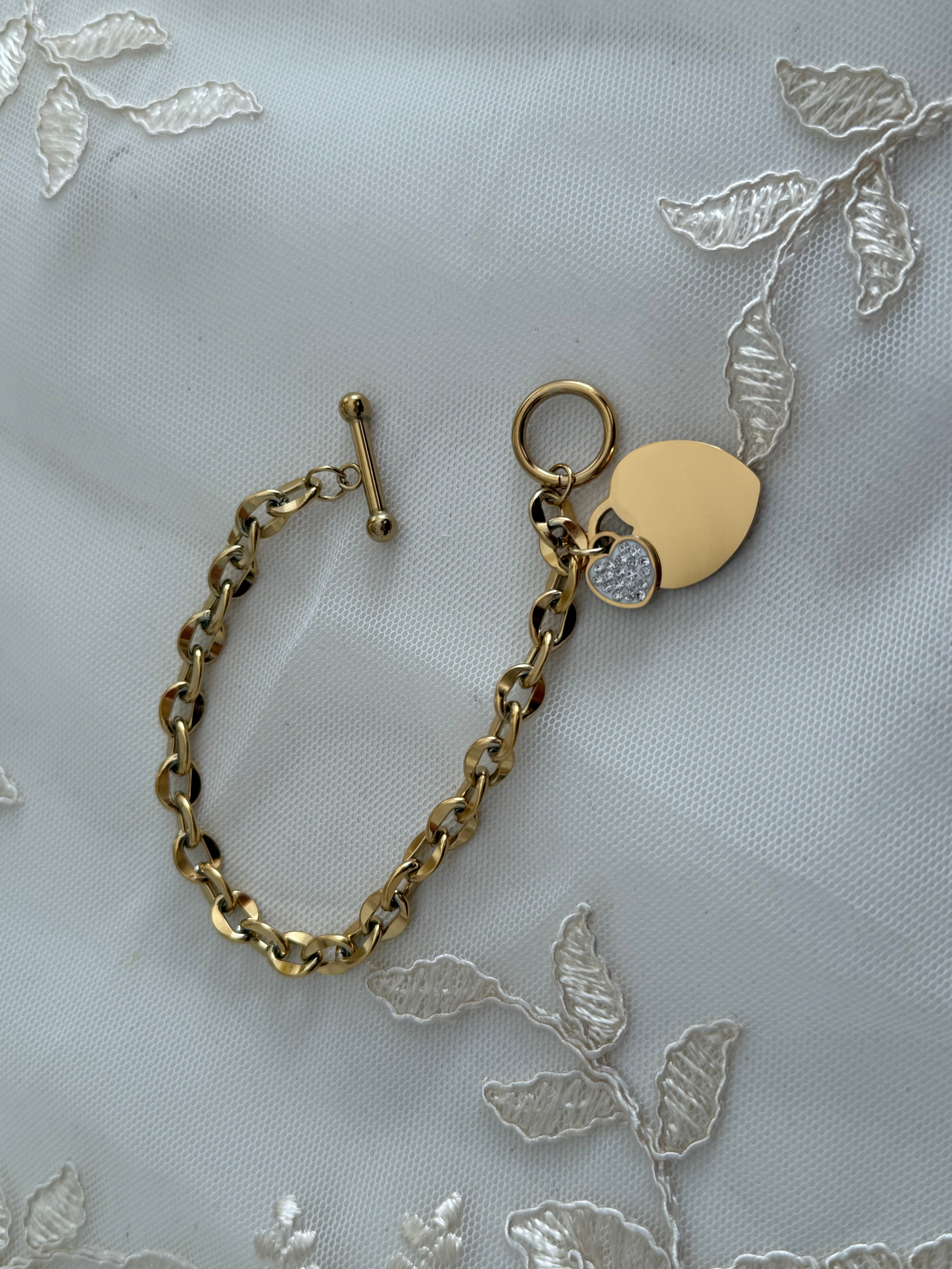 Simple Style Heart Shape 304 Stainless Steel 18K Gold Plated Artificial Rhinestones Regular Chain Bracelet.