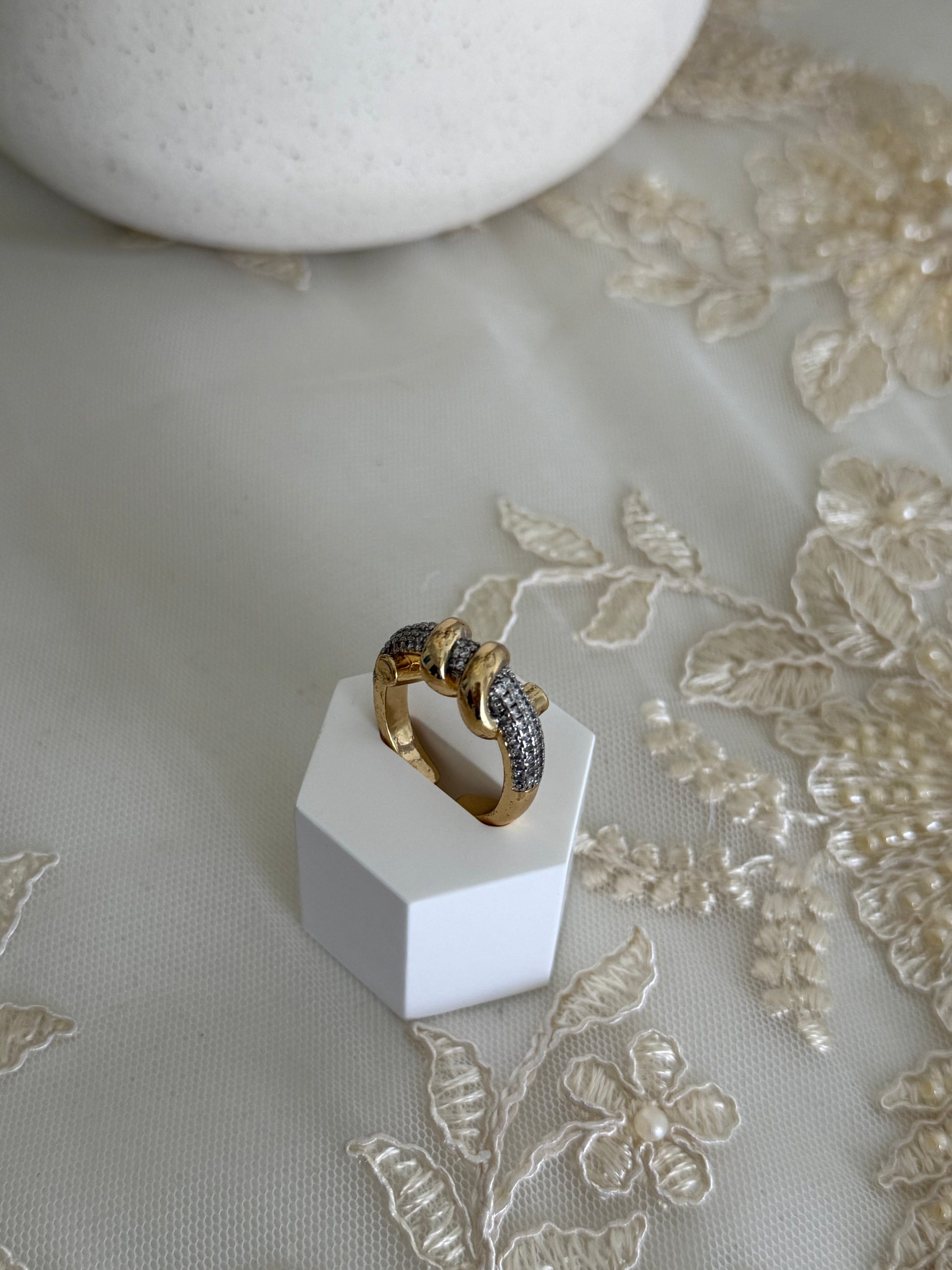 Casual Elegant Cute Irregular Geometric Copper Zircon 18K Gold Plated Inlay Ring.