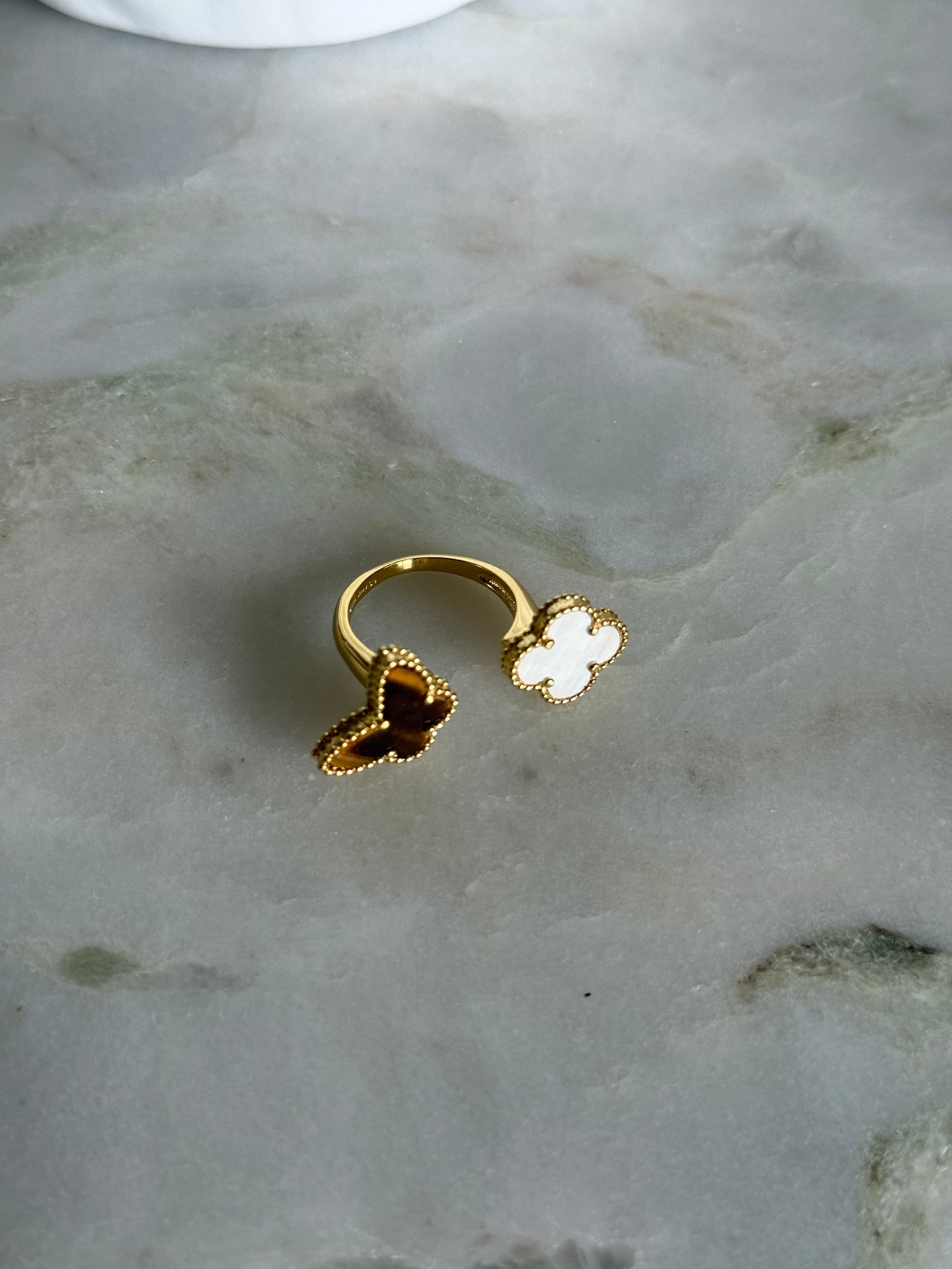 VK Style Butterfly White Flower Ring